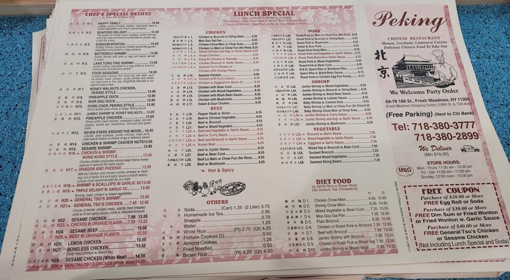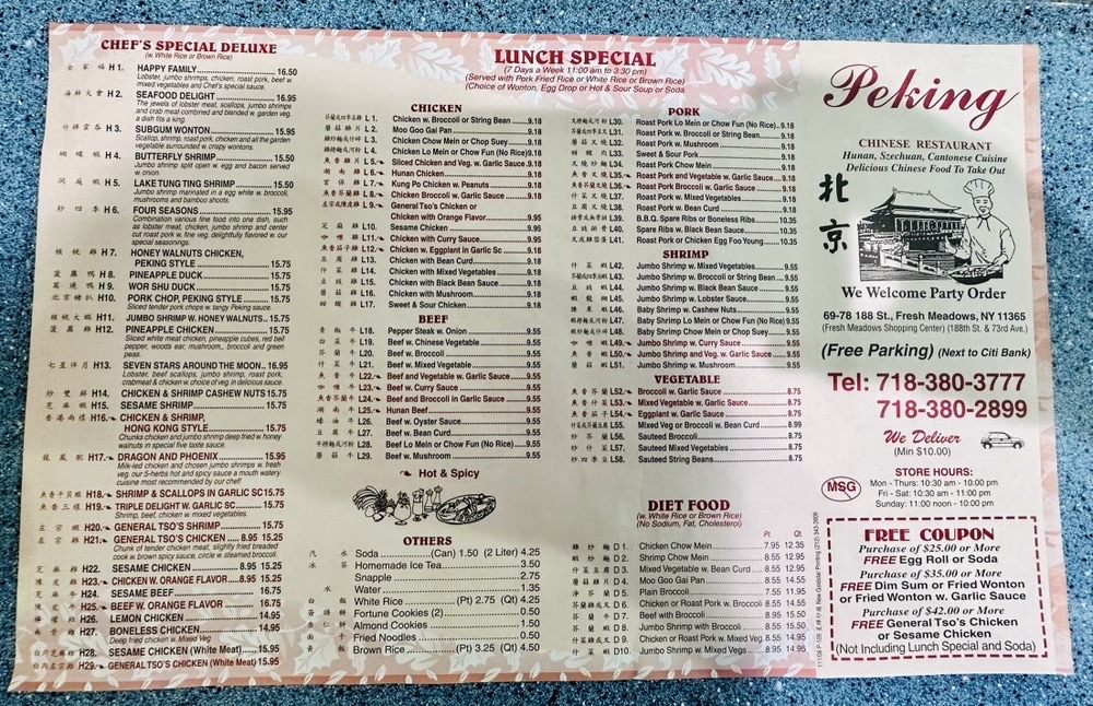 Welcome to Peking Restaurant Fresh Meadows, an exceptional destination for Chinese cuisine nestled in the heart of Fresh Meadows, NY. This casual eatery presents a delightful menu that caters to all, making it a go-to spot for families, friends, and coworkers alike. With convenient offerings like delivery, takeout, and outdoor seating, indulging in your favorite dishes has never been easier.
